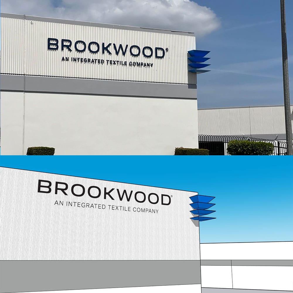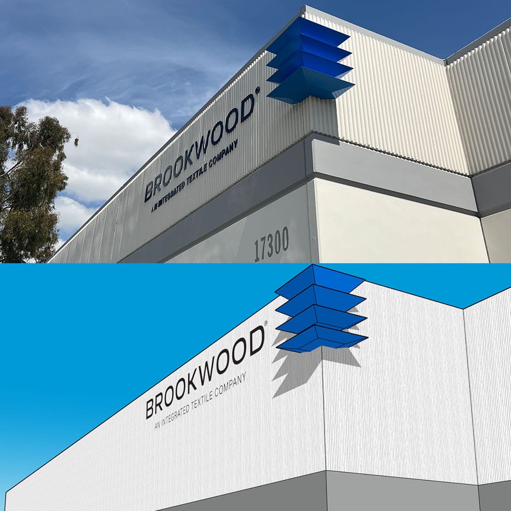 When Brookwood Roll Goods expanded its warehouse in Gardena, CA, the challenge wasn’t just space—it was visibility. The company had recently adopted a bold new brand identity, but its hallmark logo had never been visualized in three dimensions. That’s where I stepped in.
