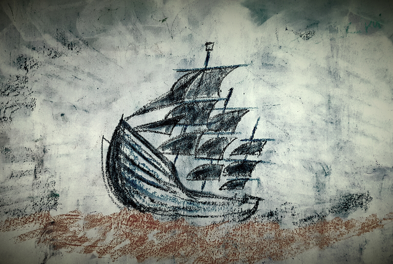 In the summertime, my mind is on the sea. And on dreams of the sea. Setting sail.... Original drawing in graphite, along with a version I colored using Photoshop.